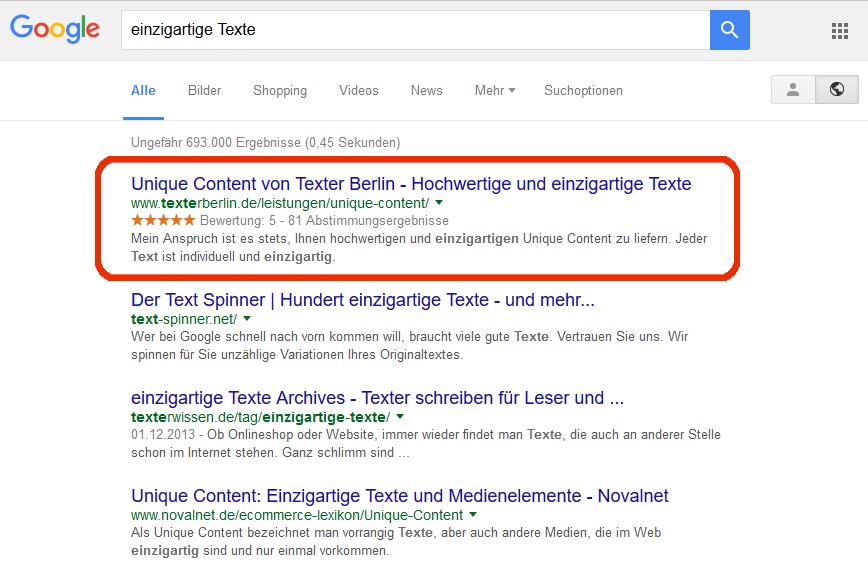 Wenn Sie z.B. online nach einem Versand für Bioprodukte suchen, werden Sie ziemlich schnell fündig. Ihnen wird eine ganze Palette an Ergebnissen angezeigt. Jetzt stellen Sie sich aber vor, dass eines der Suchergebnisse mit 5 Sternen verziert ist? Worauf klicken Sie? Auf das 5-Sterne-Ergebnis oder auf die anderen Einträge ohne Bewertung? Eine rhetorische Frage.